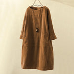 Elegantti pyöreä kaula-aukko luo täydellisen tasapainon yksinkertaisuuden ja tyylin välillä, mikä tekee tästä mekosta monipuolisen valinnan erilaisiin tilaisuuksiin. Moderni retro-chic -tyyli yhdistää menneiden aikojen viehätyksen nykypäivän muotitrendeihin, joten voit olla varma, että erottuudut joukosta.