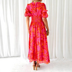 Ajaton punaroosa sävy ja tyylikäs V-pääntie luovat imartelevan ilmeen, joka säteilee itsevarmuutta. Herkät puffihihat tuovat romanttista ja muotitietoista vivahdetta klassiseen tyyliin. Tämä mekko on suunniteltu niin, että se muotoutuu kauniisti vartaloosi, unohtamatta mukavuutta ja käytännöllisyyttä.