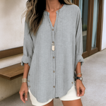 Valmistettu hengittävästä puuvilla-pellavaseoksesta, tämä paita on suunniteltu tarjoamaan luonnollista mukavuutta koko päivän ajan. Sen pehmeä ja kevyt materiaali tuntuu iholla miellyttävältä, ja sen monipuolisuus tekee siitä erinomaisen valinnan jokaiseen tilaisuuteen. Pue se päälle aamusta iltaan ja nauti tyylikkäästä, mukavasta ja vaivattomasta ilmeestä.