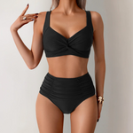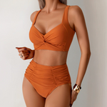 Anna tyylisi loistaa auringossa korkeavyötäröisen bandeau-bikinisi kanssa! Tämä moderni bikini yhdistää vaivattoman eleganssin ja nykyaikaisen viehätyksen, tarjoten sinulle täydellisen yhdistelmän mukavuutta ja imartelevaa siluettia. Olitpa sitten rannalla, uima-allaspileissä tai nauttimassa auringosta lomamatkalla, tämä bikini saa sinut erottumaan tyylillä kaikissa tilaisuuksissa.