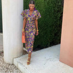 Väri | Värikäs mekko pleatatuilla hihoilla