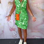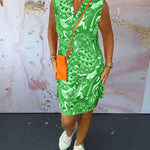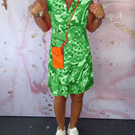 Astut esiin värikkäässä V-pääntiöllä varustetussa mekossa, joka yhdistää huolettoman tyylin ja ensiluokkaisen mukavuuden. Tämä mekko on suunniteltu naisille, jotka arvostavat sekä eleganssia että käytännöllisyyttä. Olitpa menossa töihin, lounaalle ystävien kanssa tai illanviettoon, tämä mekko mukautuu vaivattomasti kaikkiin tilaisuuksiin.
