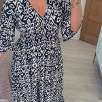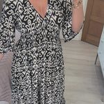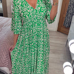 Anna itsesi loistaa tyylikkäässä, värikkäässä V-pääntömme! Tämä kevyt mekko yhdistää vaivattomasti tyylin ja mukavuuden, tehden siitä täydellisen kumppanin kesäisiin seikkailuihisi. Olitpa sitten nauttimassa auringosta rannalla, kävelemässä kesäillassa tai juhlimassa ystävien kanssa, tämä mekko on ehdoton valinta, joka nostaa itseluottamustasi.