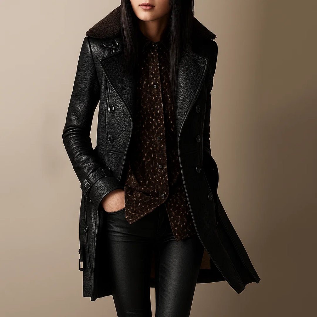 Simone | Tyylikäs puolipitkä nahkatakki