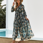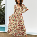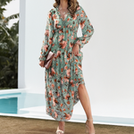 Syvä V-pääntie ja pitkät hihat luovat elegantin ilmeen, joka sopii täydellisesti jokaiseen vuodenaikaan. Leijuva siluetti ja pleatattu kangas liikkuvat sulavasti kanssasi, tarjoten kevyen ja ilmavan tunteen joka askeleella. Yhdistä mekko sandaalien kanssa päivällä tai korkokenkien kanssa illalla – aina tyylikkäänä, aina sopivana.