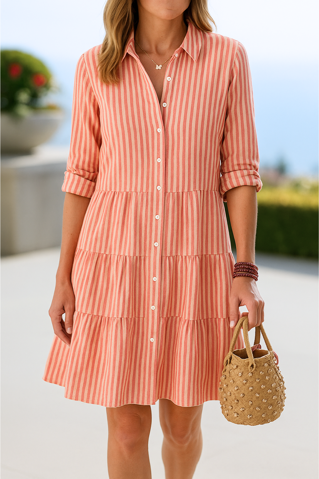 Astutko sisään maailmaan, jossa tyyli kohtaa mukavuuden? Tämä raidallinen paitamekko on enemmän kuin pelkkä vaate; se on elämys, joka nostaa itseluottamustasi joka askeleella. Ajaton muotoilu yhdistää hienostuneisuuden ja käytännöllisyyden, antaen sinulle mahdollisuuden loistaa kaikissa tilanteissa.
