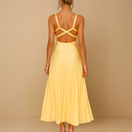 Kulta-mekko on enemmän kuin vain vaate; se on osa elämäntyyliäsi. Sen kevyt ja hengittävä materiaali tuntuu ihanalta päällä, ja tyylikäs pliseerattu hame laskeutuu pehmeästi vartalon ympärille, luoden hienostuneen siluetin. Tämä mekko on suunniteltu naisille, jotka arvostavat laatua ja kauneutta, ja se on täydellinen valinta niin päivälle sandaalien kanssa kuin iltaan korkokenkien kera.
