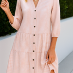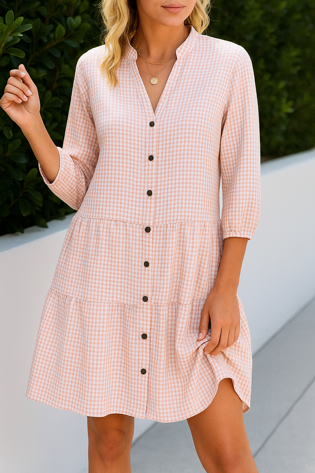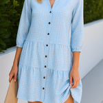 Astut huoneeseen itsevarmana ja tyylikkäänä ruudullisessa mekossa, joka yhdistää ajattoman eleganssin ja modernin muotoilun. Tämä mekko on suunniteltu naiselle, joka arvostaa sekä mukavuutta että tyyliä. Sen A-linjainen siluetti imartelee kauniisti vartaloa, ja pystykaulus lisää asusteeseen ripauksen hienostuneisuutta. Olitpa menossa töihin, lounaalle ystävien kanssa tai viettämässä rentoa päivää, tämä mekko on täydellinen valinta.