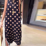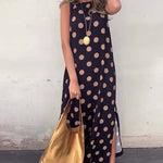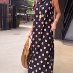 Ajaton pilkkuprintti yhdistettynä eleganttiin leikkaukseen luo asulle hienostuneen ilmeen, joka korostaa jokaisen vartalonmuotoa. Vyötäröä korostava leikkaus ja valuva hame imartelevat jokaista vartalotyyppiä, joten voit tuntea olosi itsevarmaksi ja kauniiksi missä tahansa tilanteessa.