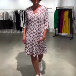 Ajaton ja trendikäs, leikkisä geometrinen kuvio tekee tästä mekosta todellisen katseenvangitsijan. Mukava istuvuus kaikille vartalotyypeille korostaa imartelevaa ilmettä, joka tuo esiin luonnolliset muodot. Valmistettu kevyestä ja hengittävästä kankaasta, mekko on täydellinen kumppani lämpimiin päiviin tai kerrospukeutumiseen viileämmillä kausilla.