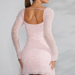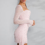 Etsitkö täydellistä mekkoa, joka yhdistää eleganssin ja ainutlaatuiset yksityiskohdat? Tämä helmimekko pitkällä hihalla on suunniteltu erityisesti sinulle, joka arvostat laadukasta muotia ja haluat erottua joukosta. Koristeelliset helmet ja tyylikkäät pitkät hihat korostavat naisellisuuttasi ja luovat upean siluetin, joka viehättää kaikissa tilaisuuksissa.