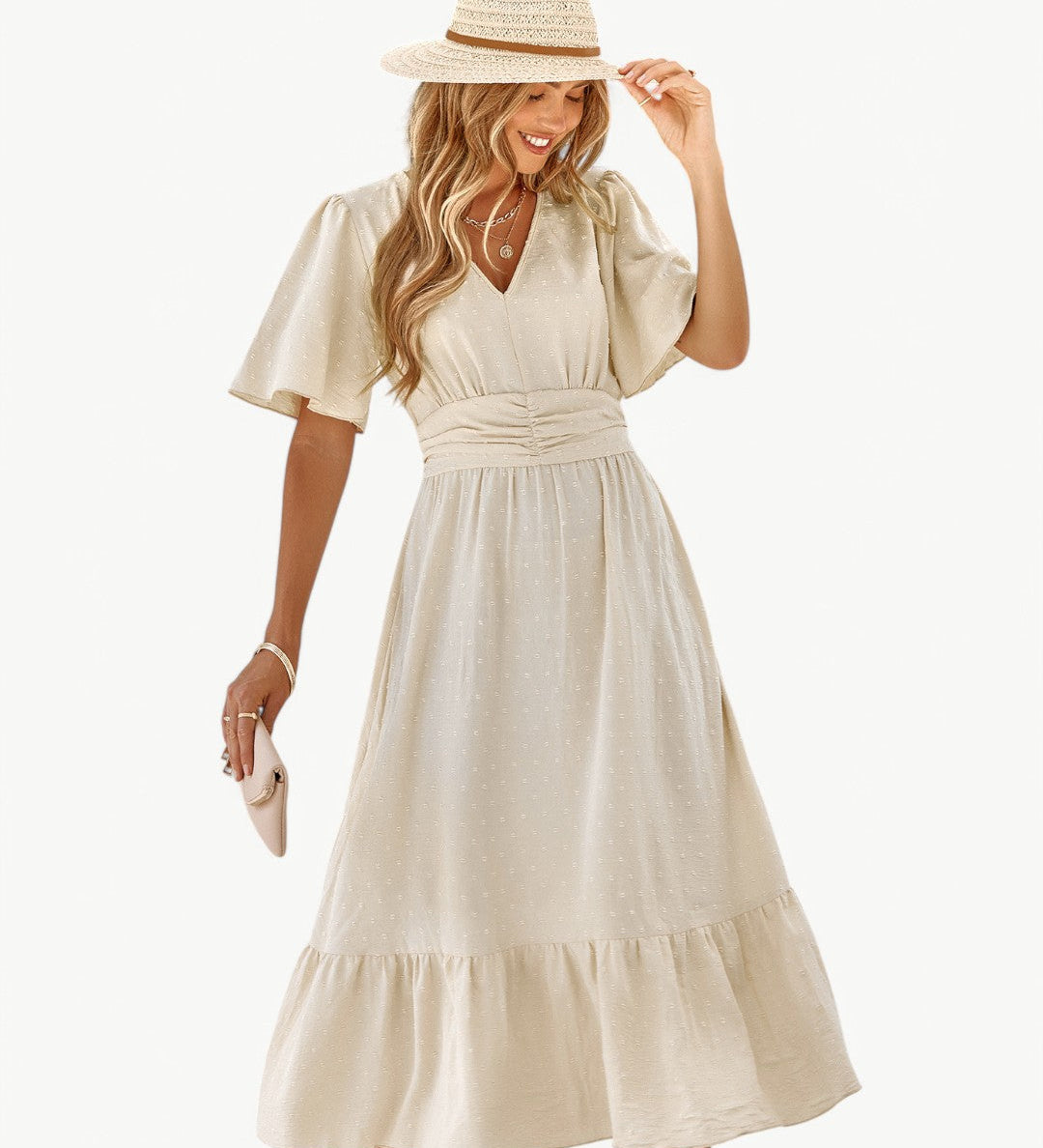 Sade | Tyylikäs mekko V-pääntiellä