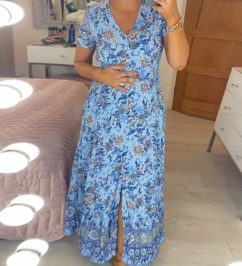 Amalia | Tyylikäs mekko pitkällä vatsapeitteellä