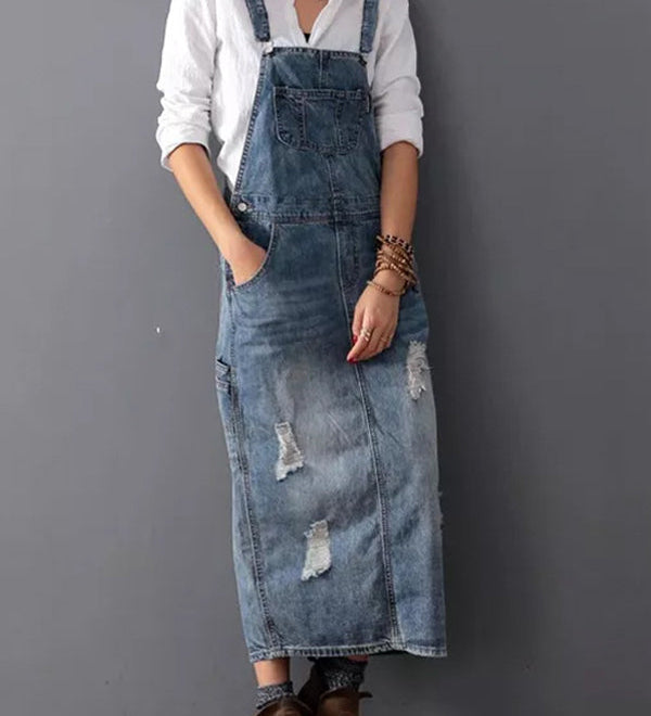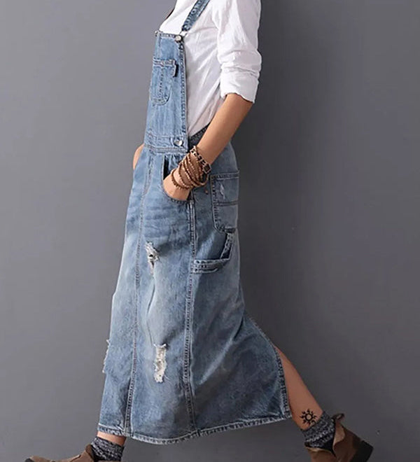 Kaarna | Tyylikäs farkkuhaalarimekko halkiolla