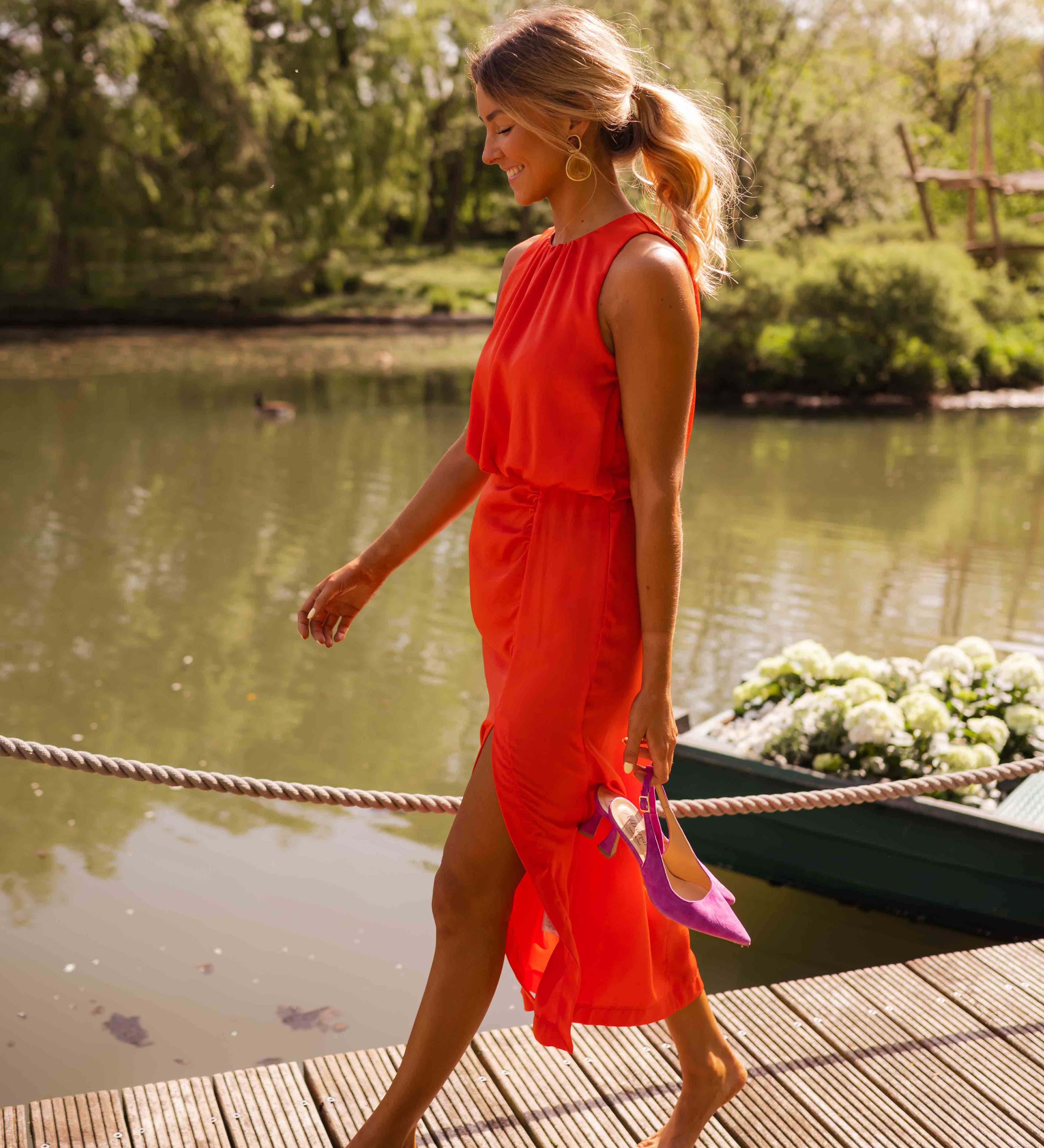 Korkea | Tyylikäs mekko korkealla halkiolla