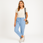Kevyet farkut ovat täydellinen valinta naiselle, joka arvostaa sekä tyyliä että mukavuutta. Pehmeä ja hengittävä kangas yhdistää vaivattoman eleganssin ja liikkumisen vapauden, mikä tekee näistä farkuista erinomaiset kevään ja kesän seikkailuihin. Olitpa sitten menossa rentoon tapaamiseen tai kaupungin kävelyretkelle, nämä farkut ovat luottovalintasi.
