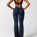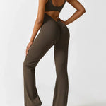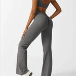 Kajo-jumpsuit yhdistää huipputyylin ja vertaansa vailla olevan mukavuuden. Sen levittävä lahje pidentää jalkojasi ja luo hoikan siluetin, kun taas kauniisti rypytetty yksityiskohta muotoilee hahmoasi täydellisesti. Syvä V-muotoinen selkäosa tuo asuun rohkeaa eleganssia, joka vangitsee katseet niin kuntosalilla kuin kaupungin kaduilla.