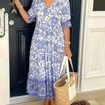 Ingrid | Tyylikäs kukkamekko V-pääntiellä
