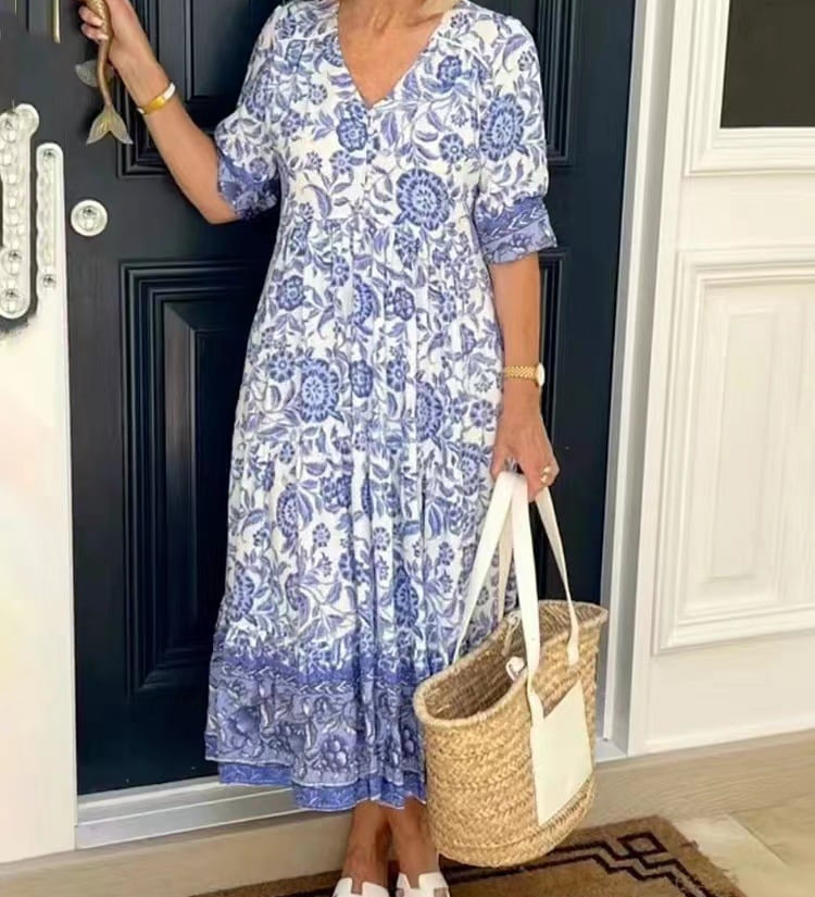 Ingrid | Tyylikäs kukkamekko V-pääntiellä