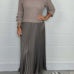 Emilia | Tyylikäs neulepusero ja hame yhdistelmä