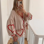 Elegantti brodeerattu yläosa on täydellinen lisä vaatekaappiisi, tuoden mukanaan ainutlaatuista viehätystä ja tyyliä. Huolellisesti suunnitellut brodeeraukset luovat yläosalle ainutlaatuisen ilmeen, joka tekee arkivaatteistasi erityisiä. Tämä yläosa ei ole vain vaate, vaan taideteos, joka korostaa kauneuttasi ja antaa sinulle itsevarmuutta jokaisessa tilanteessa.