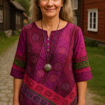 Greta-paita tuo eloa jokaiseen asukokonaisuuteen. Etnisesti inspiroitu kuvio ja harmoniset väriyhdistelmät luovat trendikkään ilmeen, joka herättää huomiota. Yhdistä se helposti farkkuihin, hameeseen tai pellavahousuihin ja nauti vaivattomasta tyylistä joka tilanteessa.