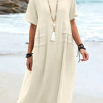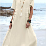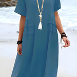 Tunne itsesi kauniiksi ja vapaaksi tyylikkäässä Kajo-mekossa, joka on suunniteltu naisille, jotka arvostavat mukavuutta ja eleganssia. Mekon huomaamaton kietaisumalli laskeutuu pehmeästi, luoden imartelevan siluetin ilman muotoilevia alusvaatteita. Tämä mekko on täydellinen valinta lämpimiin kesäpäiviin, kesäretkiin tai hetkiin, jolloin tarvitset erityistä mukavuutta.