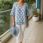 Anna tyylisi loistaa Lehtinen Helsingin pilkullisella paidalla, joka yhdistää leikkisyyden ja ajattoman muotoilun. Tämä paita on suunniteltu naisille, jotka arvostavat mukavuutta ilman kompromisseja tyylistä. Sen rento istuvuus takaa, että voit nauttia vapaudesta ja mukavuudesta koko päivän ajan, olipa kyseessä rento kahvikutsuja tai tyylikäs työpäivä.