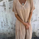 Olitpa sitten kaupungilla, rannalla tai nauttimassa brunssista ystävien kanssa, tämä mekko on täydellinen kumppani. Sen imarteleva V-pääntie ja rento leikkaus luovat elegantin ilmeen, joka on helppo yhdistää erilaisiin asusteisiin. Minimalistinen muotoilu tekee siitä ajattoman valinnan, joka sopii jokaiseen kauteen.