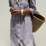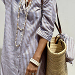 Raidallinen paitamekko on enemmän kuin pelkkä vaatekappale; se on ajattoman tyylin ja vertaansa vailla olevan mukavuuden ilmentymä. Sen hienostunut muotoilu yhdistää modernin estetiikan klassiseen eleganssiin, jolloin voit tuntea itsesi upeaksi kaikissa tilanteissa. Laadukkaat materiaalit takaavat, että mekko ei vain näytä hyvältä, vaan se myös tuntuu mukavalta päälläsi koko päivän ajan.